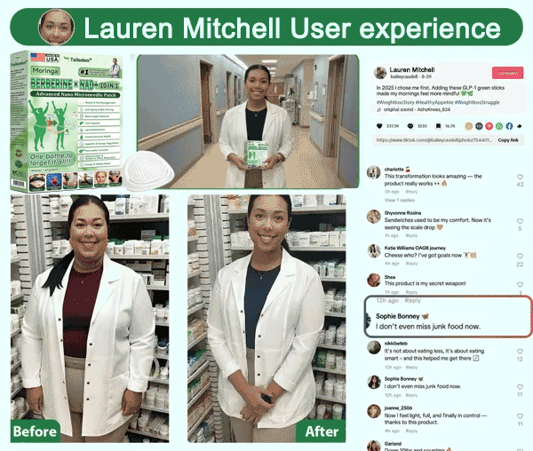 We are a top-tier endocrinology research team., and many of us have personally experienced obesity and its associated complications. Over the years, we have also evaluated commonly available weight-loss interventions on the market, including injectable therapies, capsules, and Oral weight-loss pills. However, their outcomes were often limited, and many were accompanied by tolerability concerns. These experiences motivated us to develop a safer, more natural, and more effective approach to metabolic health and weight management. After more than 12 years of research, our team initiated self-testing of this program, successfully overcoming the limitations of traditional single-pathway interventions that frequently cause gastrointestinal side effects. By adopting a dual-pathway strategy—supporting appetite regulation and fat metabolism while also addressing post-weight-loss skin firmness—we observed significant improvements in body weight and metabolic health, without rebound weight gain or adverse reactions. Subsequently, we conducted large-scale studies and clinical trials involving more than 5,000 participants, further validating the performance of 𝐓𝐚𝐢𝐥𝐝𝐞𝐧® 𝑴𝒐𝒓𝒊𝒏𝒈𝗮 · 𝗕𝗲𝗿𝗯𝗲𝗿𝙞𝙣𝙚 × 𝙉𝘼𝐃+ 𝟏𝟎-𝐢𝐧-𝟏 𝗔𝗱𝘃𝗮𝗻𝗰𝙚𝙙 𝙉𝙖𝙣𝙤 𝙈𝙞𝙘𝙧𝙤𝙣𝙚𝙚𝐝𝐥𝐞 𝐏𝐚𝐭𝙘𝙝 in metabolic regulation, appetite control, and overall health outcomes. These benefits were particularly pronounced among overweight or obese adults over the age of 40. Supported by contemporary medical research, 𝐓𝐚𝐢𝐥𝐝𝐞𝐧® 𝑴𝒐𝒓𝒊𝒏𝒈𝗮 · 𝗕𝗲𝗿𝗯𝗲𝗿𝙞𝙣𝙚 × 𝙉𝘼𝐃+ 𝟏𝟎-𝐢𝐧-𝟏 𝗔𝗱𝘃𝗮𝗻𝗰𝙚𝙙 𝙉𝙖𝙣𝙤 𝙈𝙞𝙘𝙧𝙤𝙣𝙚𝙚𝐝𝐥𝐞 𝐏𝐚𝐭𝙘𝙝 has undergone rigorous FDA regulatory review and evaluation, with its safety, effectiveness, and compliance formally recognized. This formulation represents a scientific advancement beyond conventional weight-loss products that are often associated with significant gastrointestinal burden, offering a natural, safe, and effective option for individuals seeking comprehensive metabolic support and sustainable long-term weight management.”